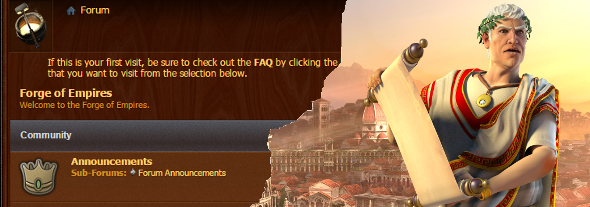 Har du noen gang lurt på noe i spillet? Eller har du kanskje forslag eller tilbakemeldinger på hvordan noe i spillet fungerer? På forumet kan du både stille og svare på spørsmål, diskutere og komme med dine forslag og meninger sammen med andre spillere og Forge of Empires-teamet.